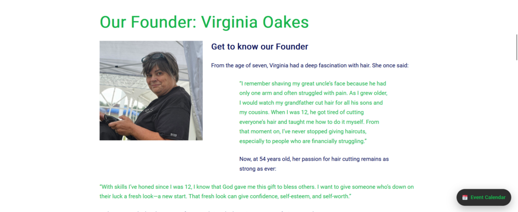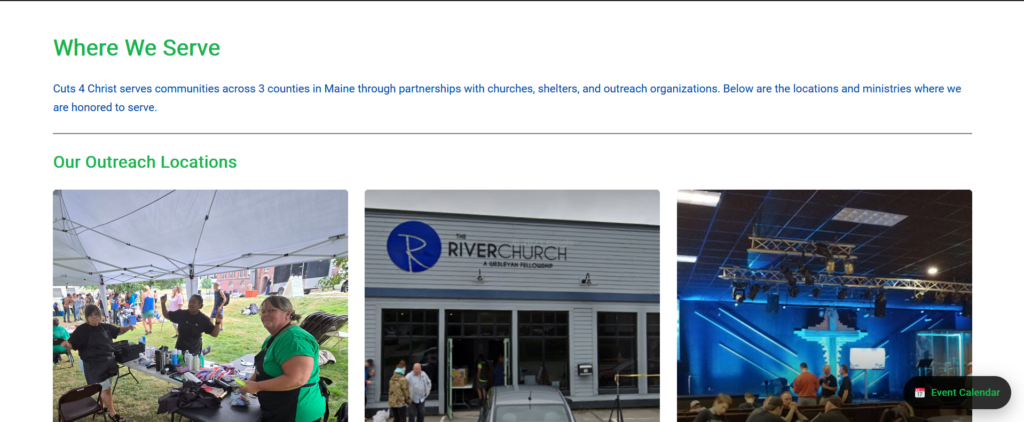 The new Cuts 4 Christ website provides a more modern and inviting experience, with clearer navigation, better organization, and improved access to key information. Visitors can now more easily find upcoming outreach events, learn about the ministry’s mission, explore ways to volunteer, and support future outreach efforts.